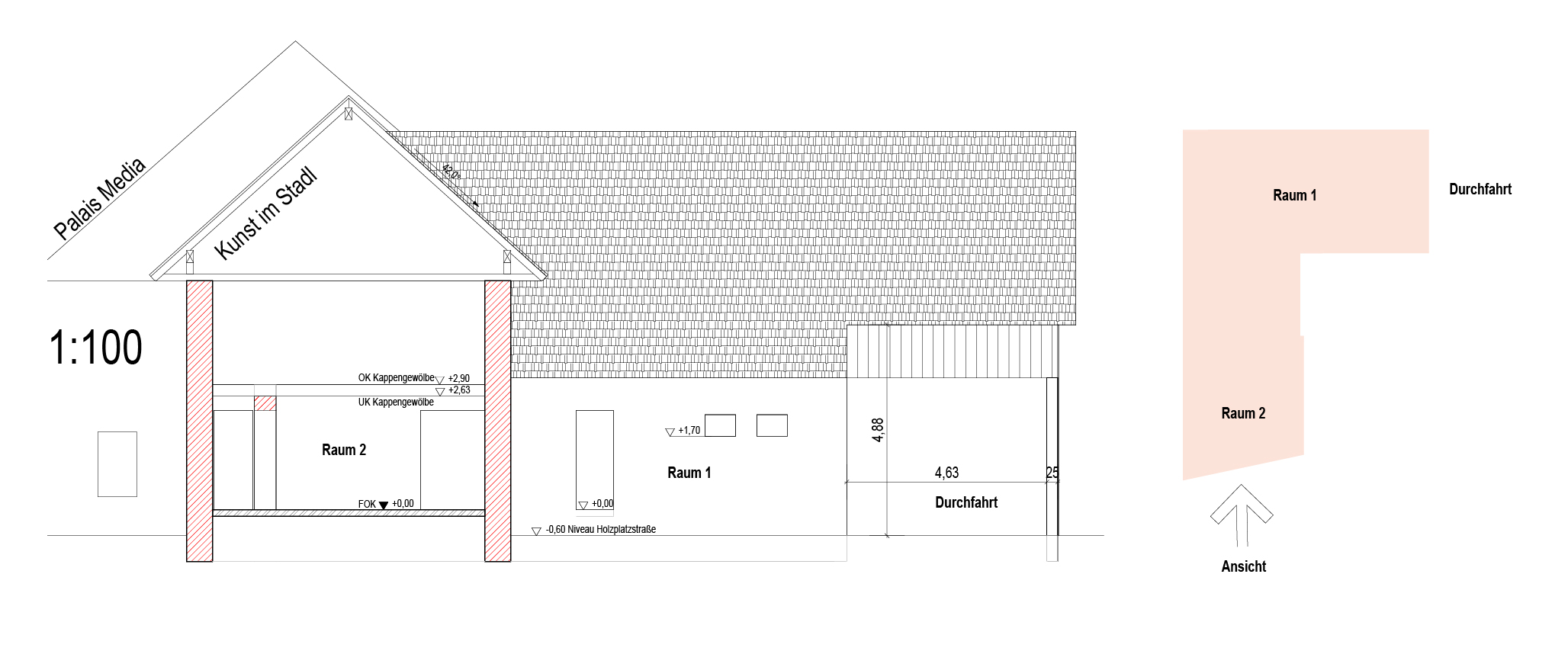 Raumhöhe: 3,44 – 3,80 m